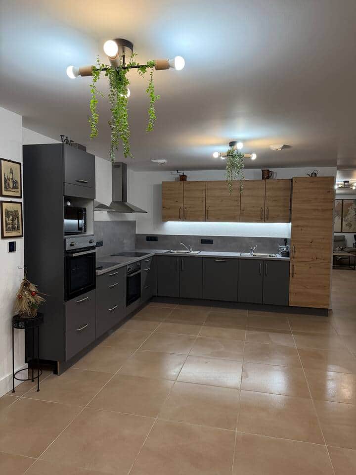 - Cuisine : plaques de cuisson, réfrigérateur, casseroles, poêles, micro-onde, cafetière Nespresso, ustensiles de cuisine, vaisselle complète